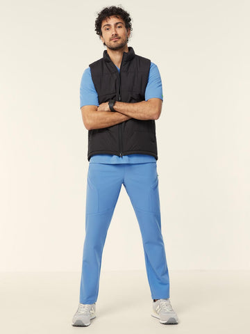 The Drew Slim Scrub Pant combines sleek design with ultimate functionality. Featuring a slim fit and straight leg silhouette, these pants offer a modern, streamlined look. The ribbed waistband with elastic and an internal drawcord ensures a secure, adjustable fit. Designed for convenience, the pull-on style is easy to wear, while the contrast key loop at the waist adds a pop of style. Two hip pockets and two zippered pockets provide ample storage, and the curved back yoke enhances the fit for added comfort.